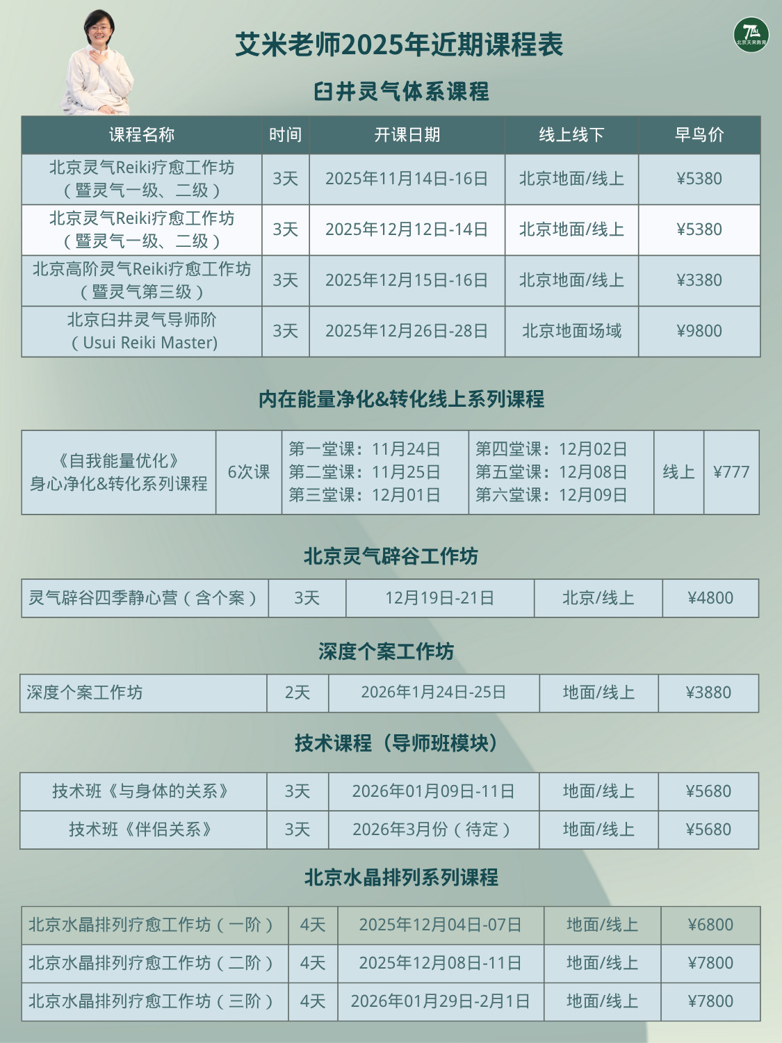 更新:2026年艾米老师课程时间安排表